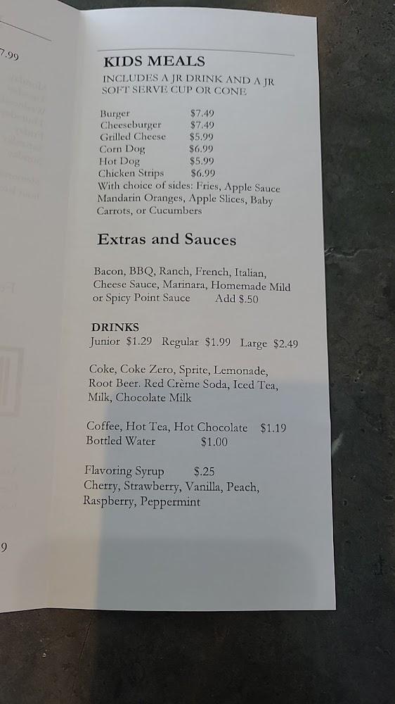 The menu at The Point showcases carefully crafted traditional dishes made from quality ingredients. Signature items include the classic cheeseburger and savory sandwiches like the Cowboy burger and patty melt. Appetizing sides such as cheese fries and onion rings complement main dishes. There are also kid-friendly options, ensuring even the youngest diners find something they love. For dessert, indulge in an array of hand-dipped flavors and refreshing milkshakes. With over 90 dishes, there's always something new to try at The Point.